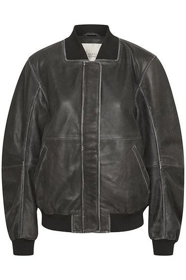 - Model: Gilomw Leather Bomber Jacket Jakker 10704311 Medium Grey Retro Wash