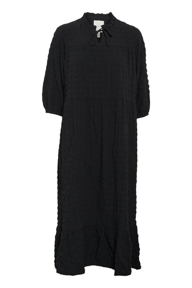 OBS! Fjernlager. Levering kan blive forlænget med 2-3 dage, hvis varen ikke findes i vores butik lige nu.Fin kjole fra Part Two med ¾ lange ærmer, v-udskæring i halsen og feminine detaljer.