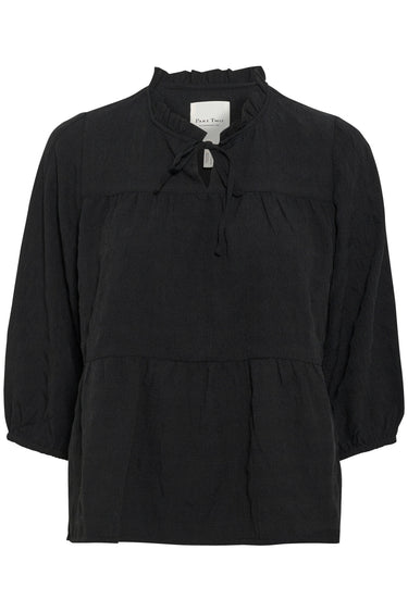 OBS! Fjernlager. Levering kan blive forlænget med 2-3 dage, hvis varen ikke findes i vores butik lige nu.Fin bluse fra Part Two med ¾ lange ærmer, v-udskæring i halsen og feminine detaljer.