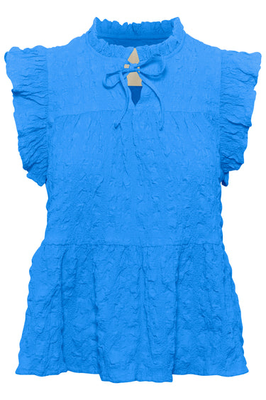 OBS! Fjernlager. Levering kan blive forlænget med 2-3 dage, hvis varen ikke findes i vores butik lige nu.Fin bluse fra Part Two med små flæseærmer, rund hals med en lille v-udskæring og bindesnor samt en let kvalitet og en afslappet silhuet.