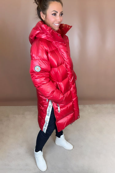 En luksuriøs dunjakke fra Caya med skjult to-vejs lynlås der lukker jakken. Høj krave med hætte, der holder på varmen. To sidelommer og en inderlomme med lynlåslukning. Jakken har også slidser med lynlås der giver mulighed for at åbne op i siderne. Derudover har jakken seler på indersiden, der holder den på plads.