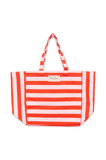 - OBS! Fjernlager. Levering kan blive forlænget med 2-3 dage, hvis varen ikke findes i vores butik lige nu.Smart shopper fra Part Two med robuste bærehanke og et fint stribet print.
