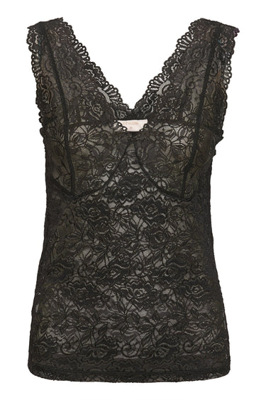 OBS! Fjernlager. Levering kan blive forlænget med 2-3 dage, hvis varen ikke findes i vores butik lige nu.Smuk blondetop fra Cream med brede skulderstropper.