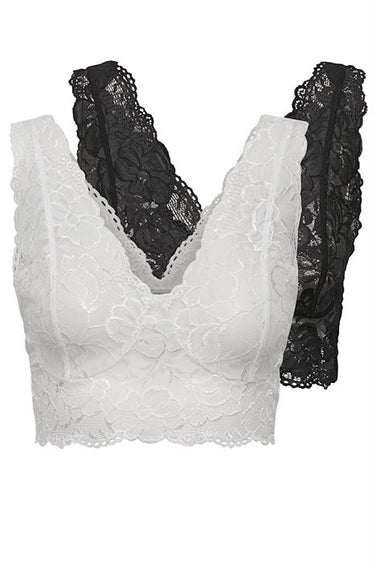 OBS! Fjernlager. Levering kan blive forlænget med 2-3 dage, hvis varen ikke findes i vores butik lige nu.Feminine blondetoppe fra Cream med en smuk kvalitet.Toppen kommer i en pakke med 2 stk.