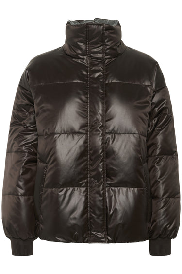OBS! Fjernlager. Levering kan blive forlænget med 2-3 dage, hvis varen ikke findes i vores butik lige nu.Super cool og vendbar puffer jakke fra My Essential Wardrobe med lange ærmer, tætsiddende ribmanchetter og høj hals.Jakken har også et klassisk quiltet udtryk, skjult lynlåslukning langs fronten og en løs pasform. Brug den enten med den lækre espresso farve udad eller vend den til en cool sølv-grå.