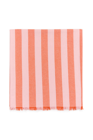OBS! Fjernlager. Levering kan blive forlænget med 2-3 dage, hvis varen ikke findes i vores butik lige nu.Smart badehåndklæde fra Part Two med rå kanter og et stribet print.
