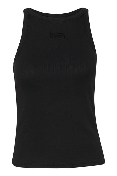 OBS! Fjernlager. Levering kan blive forlænget med 2-3 dage, hvis varen ikke findes i vores butik lige nu.Smart ribbet tank top fra Gestuz med rund hals og et fint lille logo over brystet.