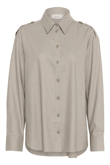 OBS! Fjernlager. Levering kan blive forlænget med 2-3 dage, hvis varen ikke findes i vores butik lige nu.Smart skjortebluse fra Gestuz med lange ærmer, et oversized snit og spids krave i halsen.Blusen har også fine detaljer på skulderne og lukkes med knapper langs fronten.