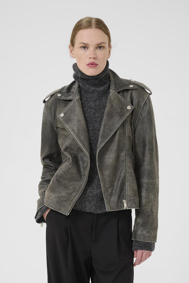 OBS! Fjernlager. Levering kan blive forlænget med 2-3 dage, hvis varen ikke findes i vores butik lige nu.Smart skindjakke fra Gestuz med lange ærmer, en klassisk bred krave i halsen og super flotte detaljer.