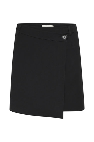 OBS! Fjernlager. Levering kan blive forlænget med 2-3 dage, hvis varen ikke findes i vores butik lige nu.Flot nederdel fra Gestuz med en smart slå-om effekt der lukkes med en stor knap i siden, en cropped længde og mid-rise talje.