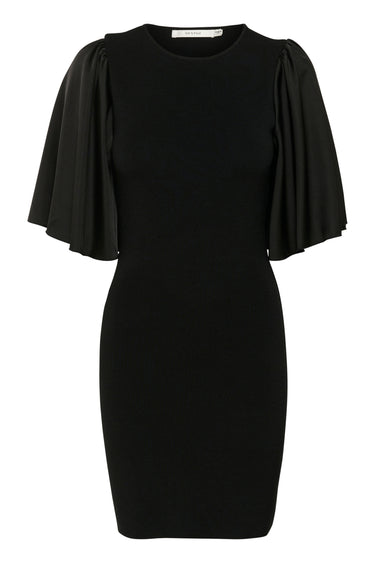 OBS! Fjernlager. Levering kan blive forlænget med 2-3 dage, hvis varen ikke findes i vores butik lige nu.Elegant kjole fra Gestuz med korte flæseærmer, rund hals og en slim-fit pasform.