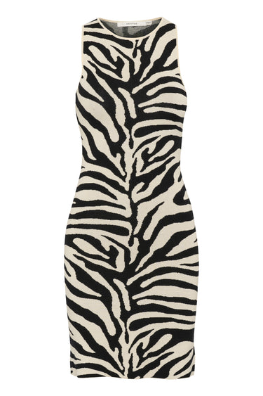 OBS! Fjernlager. Levering kan blive forlænget med 2-3 dage, hvis varen ikke findes i vores butik lige nu.Flot kjole fra Gestuz med rund hals, en tætsiddende pasform og et super cool mønster.