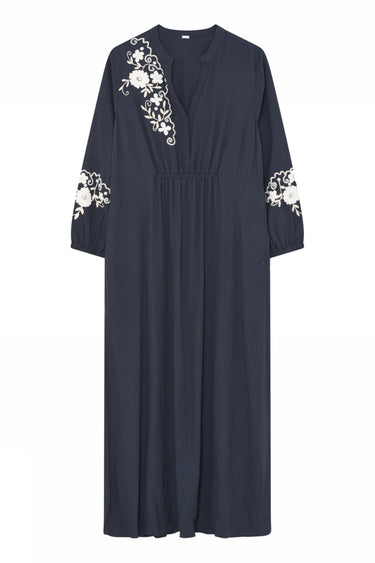 OBS! Fjernlager. Levering kan blive forlænget med 2-3 dage, hvis varen ikke findes i vores butik lige nu.Smuk kjole fra Gustav med ¾ lange ærmer, rund hals med v-udskæring og de smukkeste broderet detaljer.Kjolen har også en lækker kvalitet og en løs silhuet.