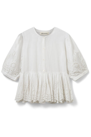 - OBS! Fjernlager\nLeveringen kan blive forlænget med 1-2 dage, hvis varen ikke er at finde i vores butik lige nu.\n\nModel HATTIESW BLOUSE Blouse S251292 0124 Snow white\n\n100% Cotton\n\n30 degrees gentle wash