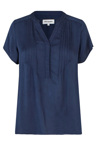 OBS! Fjernlager. Levering kan blive forlænget med 2-3 dage, hvis varen ikke findes i vores butik lige nu.Sød top fra Lollys Laundry med korte ærmer, v-udskæring i halsen og fine læg over brystet.