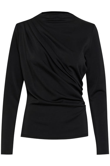 OBS! Fjernlager. Levering kan blive forlænget med 2-3 dage, hvis varen ikke findes i vores butik lige nu.Smart bluse fra My Essential Wardrobe med lange ærmer, høj hals og smukke draperet effekter i siden.
