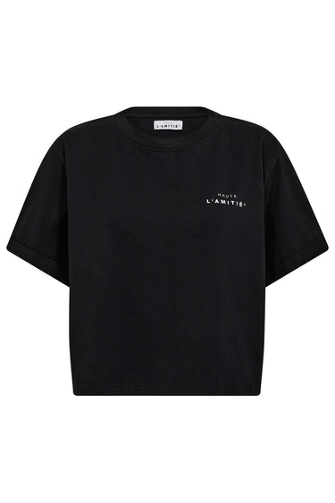 OBS! Fjernlager. Levering kan blive forlænget med 2-3 dage, hvis varen ikke findes i vores butik lige nu.Cool tee fra Haute L'Amitié med korte ærmer og rund hals.