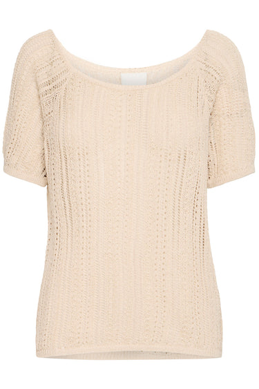 - OBS! Fjernlager. Levering kan blive forlænget med 2-3 dage, hvis varen ikke findes i vores butik lige nu.Super fin strik fra Ichi med korte ærmer og bådudskæring i halsen.