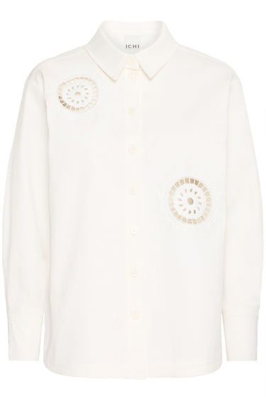 - OBS! Fjernlager. Levering kan blive forlænget med 2-3 dage, hvis varen ikke findes i vores butik lige nu.Flot skjorte fra Ichi med lange ærmer, en klassisk krave i halsen og knaplukning langs fronten.Skjorten har også en løs silhuet og flotte broderet detaljer foran.