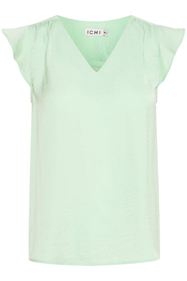 OBS! Fjernlager. Levering kan blive forlænget med 2-3 dage, hvis varen ikke findes i vores butik lige nu.Sød og feminin bluse fra Ichi med v-udskæring i halsen og fine flæseærmer.