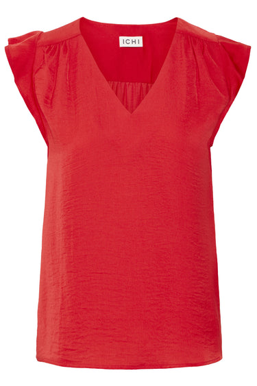 - OBS! Fjernlager. Levering kan blive forlænget med 2-3 dage, hvis varen ikke findes i vores butik lige nu.Sød og feminin bluse fra Ichi med v-udskæring i halsen og fine flæseærmer.