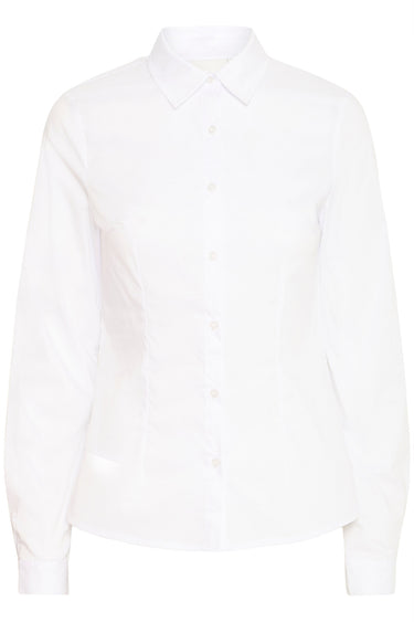 OBS! Fjernlager. Levering kan blive forlænget med 2-3 dage, hvis varen ikke findes i vores butik lige nu.Klassisk skjortebluse fra Ichi med lange ærmer, krave i halsen og en let figursyet silhuet.