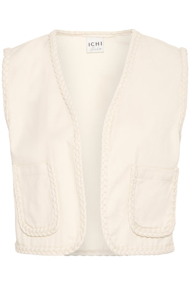- OBS! Fjernlager. Levering kan blive forlænget med 2-3 dage, hvis varen ikke findes i vores butik lige nu.Smart åbenstående vest fra Ichi med en cropped længde og fine lommer i fronten.