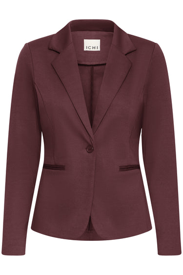 OBS! Fjernlager. Levering kan blive forlænget med 2-3 dage, hvis varen ikke findes i vores butik lige nu.Klassisk blazer fra Ichi med lange ærmer, v-udskæring og en fin krave i halsen.