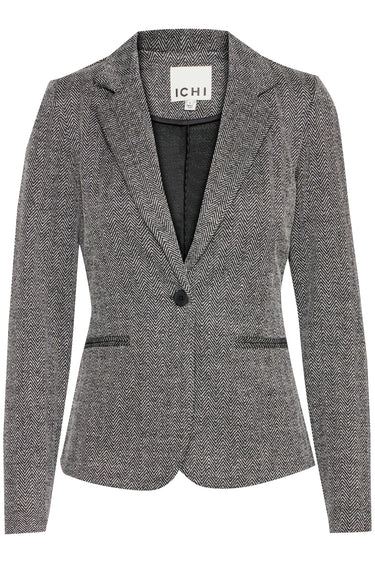 OBS! Fjernlager. Levering kan blive forlænget med 2-3 dage, hvis varen ikke findes i vores butik lige nu.Flot blazerjakke fra Ichi med lange ærmer, v-udskæring i halsen og en klassisk figursyet silhuet.