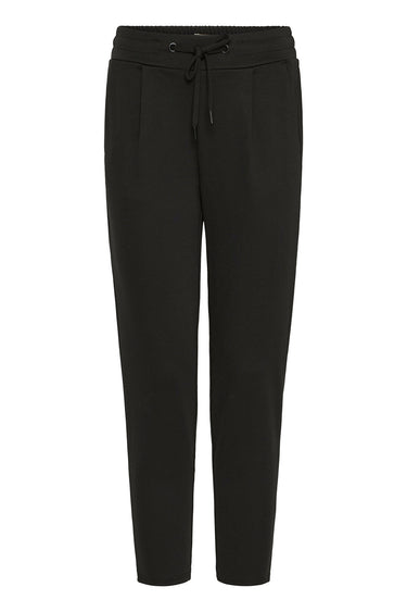 OBS! Fjernlager. Levering kan blive forlænget med 2-3 dage, hvis varen ikke findes i vores butik lige nu.Flotte enkle bukser fra Ichi med en bred elastikkant og bindesnor i taljen, en slim-leg silhuet og en cropped længde.
