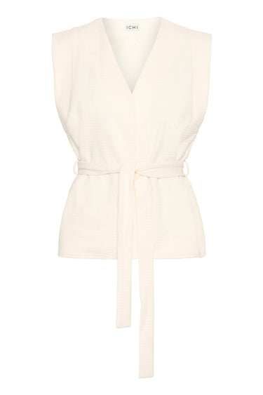 OBS! Fjernlager. Levering kan blive forlænget med 2-3 dage, hvis varen ikke findes i vores butik lige nu.Elegant jakke fra Ichi med v-udskæring i halsen og et bredt bindebælte i taljen.