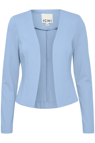 OBS! Fjernlager. Levering kan blive forlænget med 2-3 dage, hvis varen ikke findes i vores butik lige nu.Flot åbentstående blazer fra Ichi med lange ærmer, en let cropped længde og et helt enkelt udtryk.