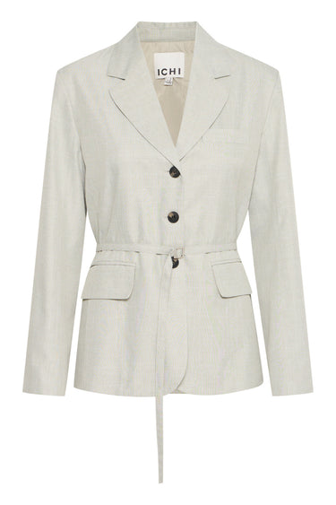 OBS! Fjernlager. Levering kan blive forlænget med 2-3 dage, hvis varen ikke findes i vores butik lige nu.Super flot blazer fra Ichi med lange ærmer, v-udskæring med en smal krave i halsen og fine lommeflapper i siderne.Blazeren lukkes også langs fronten med knapper og kan justeres i taljen med et smalt bånd.