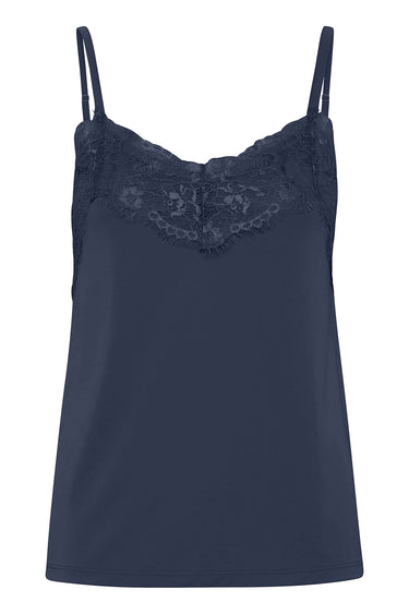 - OBS! Fjernlager. Levering kan blive forlænget med 2-3 dage, hvis varen ikke findes i vores butik lige nu.Sød blonde top fra Ichi med smalle skulderstropper.