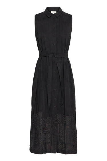 - OBS! Fjernlager. Levering kan blive forlænget med 2-3 dage, hvis varen ikke findes i vores butik lige nu.Smuk skjortekjole fra Ichi med en lille krave i halsen og knaplukning langs fronten.Kjolen har også et bredt bindebælte i taljen og super flotte blonder i bunden.