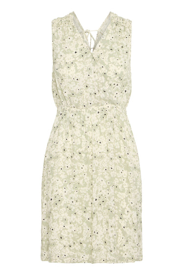 OBS! Fjernlager. Levering kan blive forlænget med 2-3 dage, hvis varen ikke findes i vores butik lige nu.Flot kjole fra Ichi med v-udskæring i halsen, elastikkant i taljen og et super fint print.