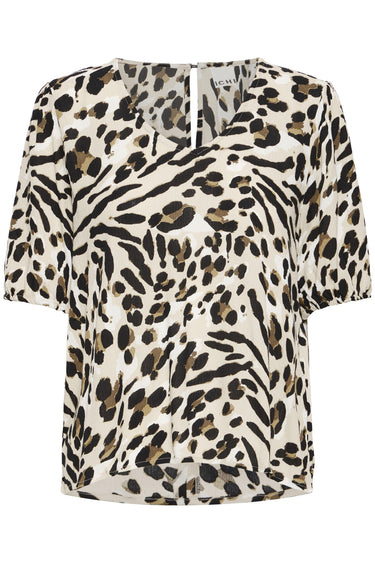 OBS! Fjernlager. Levering kan blive forlænget med 2-3 dage, hvis varen ikke findes i vores butik lige nu.Smart bluse fra Ichi med korte ærmer, v-udskæring i halsen og et fint stribet print.