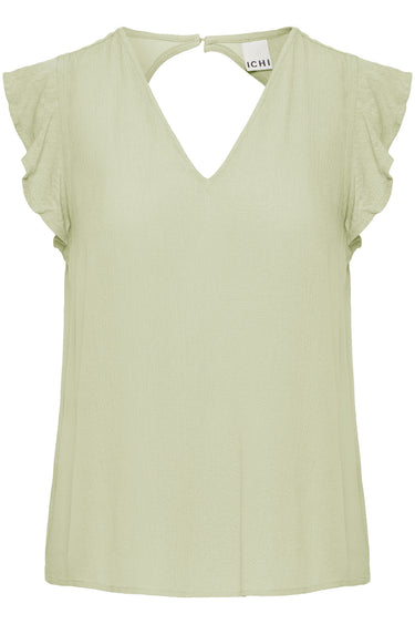 - OBS! Fjernlager. Levering kan blive forlænget med 2-3 dage, hvis varen ikke findes i vores butik lige nu.Flot bluse fra Ichi med v-udskæring i halsen og ryggen og små flæseærmer.