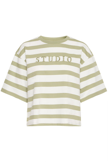 - OBS! Fjernlager. Levering kan blive forlænget med 2-3 dage, hvis varen ikke findes i vores butik lige nu.Smart sweatshirt fra Ichi med ½ lange ærmer, rund hals og fine striber.