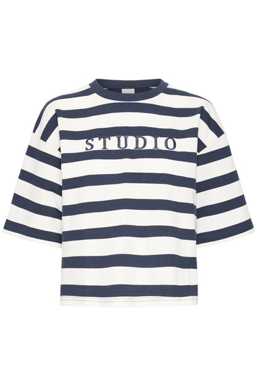 - OBS! Fjernlager. Levering kan blive forlænget med 2-3 dage, hvis varen ikke findes i vores butik lige nu.Smart sweatshirt fra Ichi med ½ lange ærmer, rund hals og fine striber.