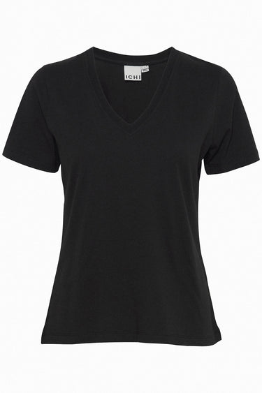 OBS! Fjernlager. Levering kan blive forlænget med 2-3 dage, hvis varen ikke findes i vores butik lige nu.Fin tee fra Ichi med korte ærmer og v-udskæring i halsen.