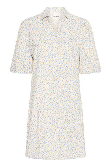 OBS! Fjernlager. Levering kan blive forlænget med 2-3 dage, hvis varen ikke findes i vores butik lige nu.Sød kjole fra Ichi med ½ lange ærmer, krave i halsen og en figursyet silhuet.