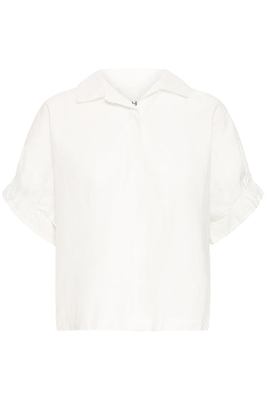 OBS! Fjernlager. Levering kan blive forlænget med 2-3 dage, hvis varen ikke findes i vores butik lige nu.Feminin skjorte fra Ichi med korte pufærmer, en lille krave i halsen og en smart elastikdetalje i ryggen.