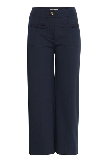 - OBS! Fjernlager. Levering kan blive forlænget med 2-3 dage, hvis varen ikke findes i vores butik lige nu.Flotte bukser fra Ichi med høj talje, cropped længde og et straight-leg snit.