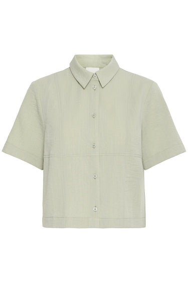 OBS! Fjernlager. Levering kan blive forlænget med 2-3 dage, hvis varen ikke findes i vores butik lige nu.Smart skjortebluse fra Ichi med korte brede ærmer, en lille krave i halsen og knaplukning foran.