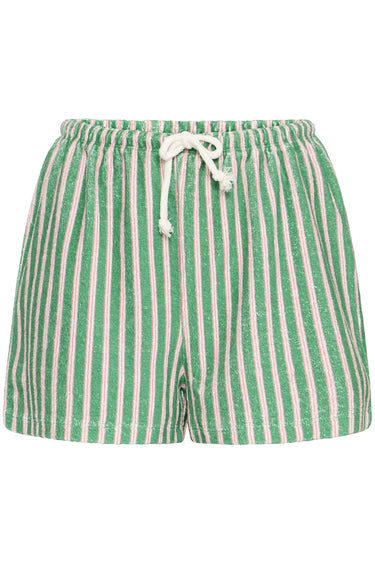 - OBS! Fjernlager. Levering kan blive forlænget med 2-3 dage, hvis varen ikke findes i vores butik lige nu.Skønne shorts fra Ichi med bindebånd i taljen, lidt vidde i benene og et klassisk stribet print.
