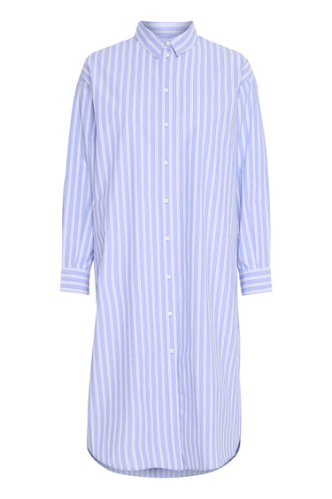 OBS! Fjernlager. Levering kan blive forlænget med 2-3 dage, hvis varen ikke findes i vores butik lige nu.Smart skjortekjole fra Ichi med lange ærmer, en lille krave i halsen og knaplukning langs fronten.