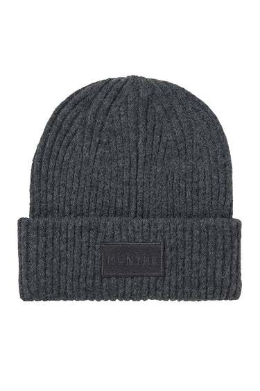 OBS! Fjernlager. Levering kan blive forlænget med 2-3 dage, hvis varen ikke findes i vores butik lige nu.Ribstrikket hue fra Munthe med logomærke foran. Fremstillet af en blød genanvendt polyester blanding.