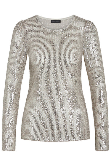 - OBS! Fjernlager. Levering kan blive forlænget med 2-3 dage, hvis varen ikke findes i vores butik lige nu.Smuk pailletbluse fra Bruuns Bazaar med lange ærmer, rund hals og en skøn kvalitet.