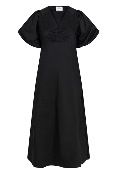 Flot og enkel kjole fra Neo Noir med korte pufærmer, v-udskæring og fine draperet effekter over brystet.Kjolen har også lommer i siderne og en feminin silhuet.